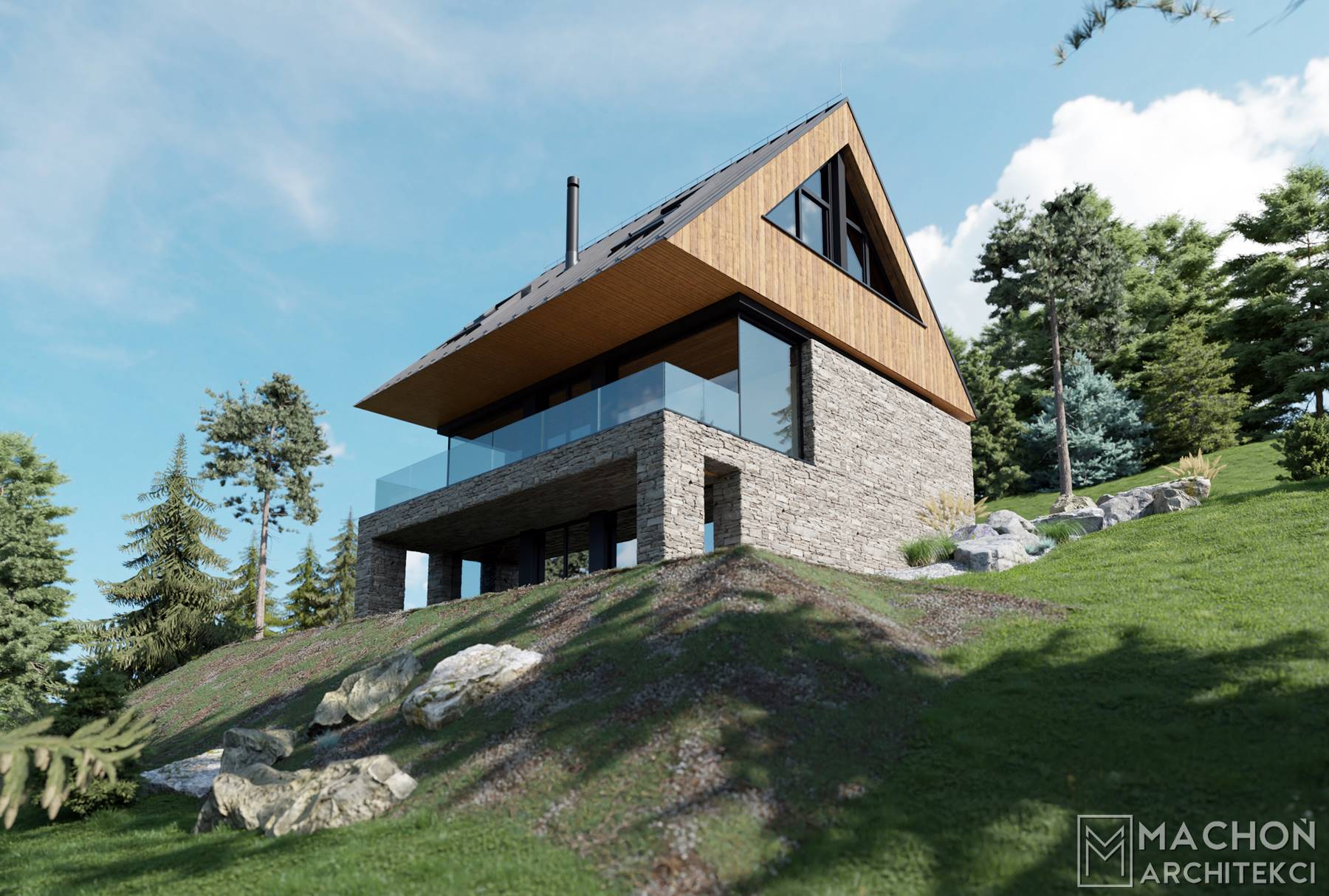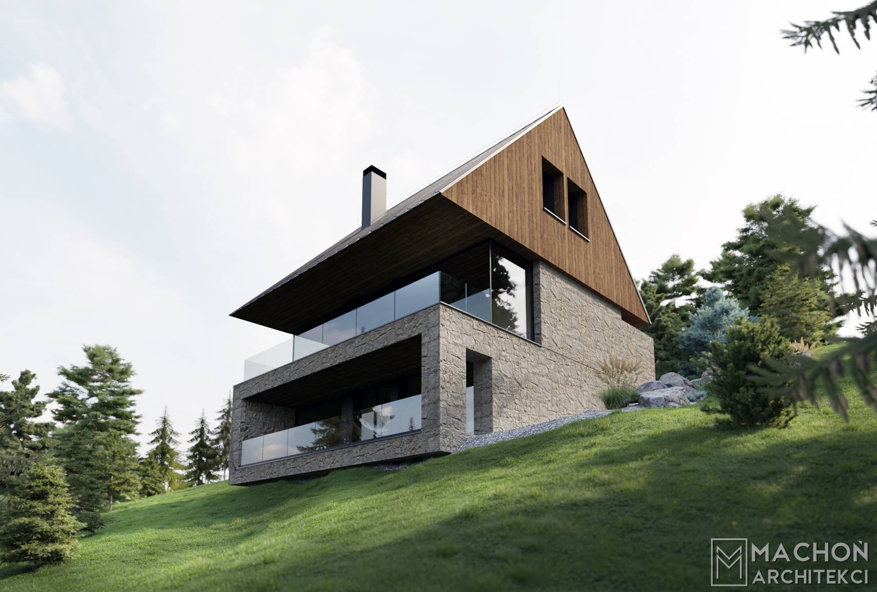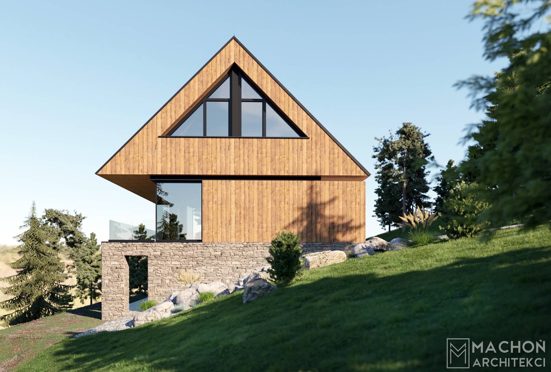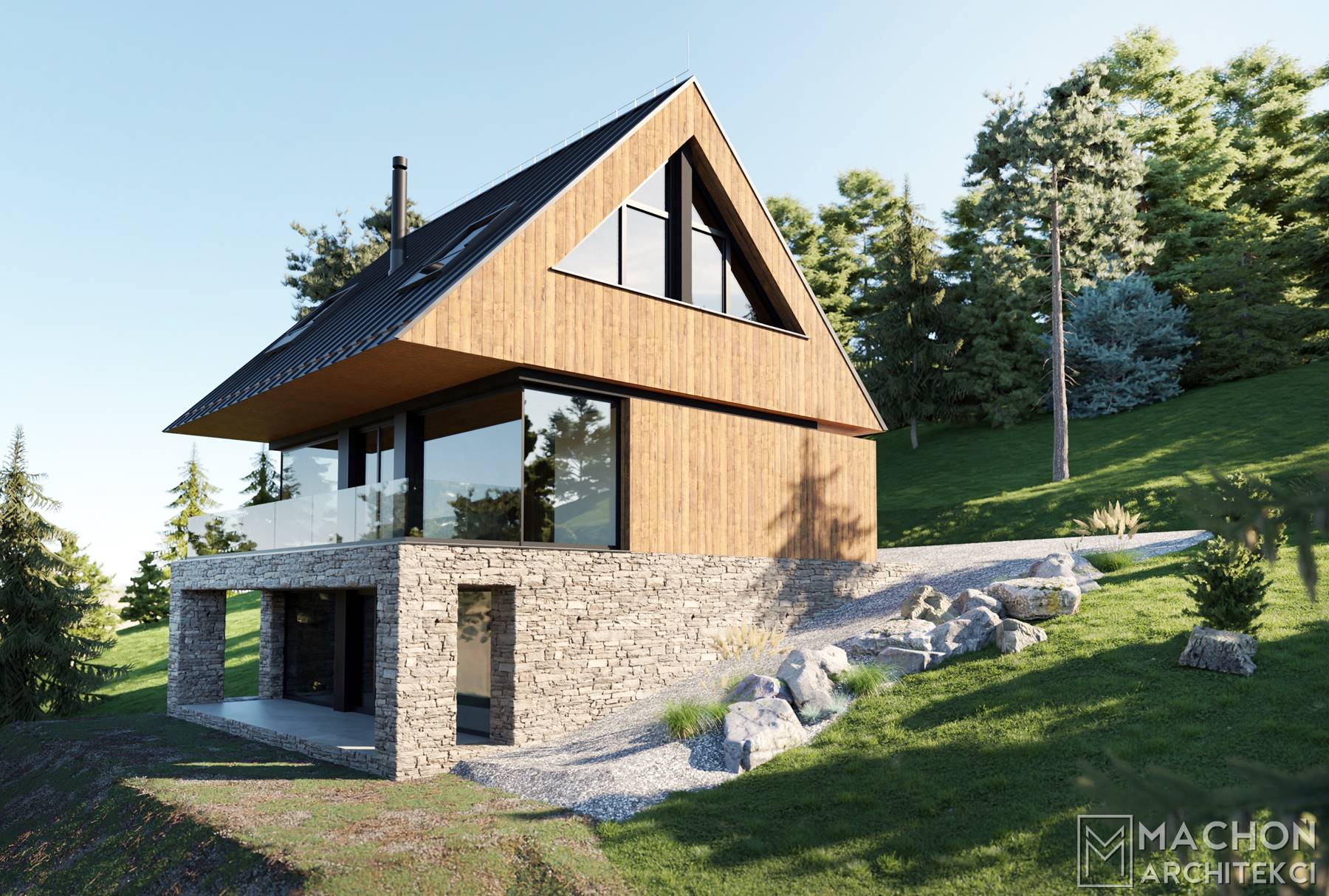 Projekty budynków mieszkalnych jednorodzinnych ulokowanych na działce ze znacznym spadkiem terenu. Budynki mają 3 kondygnacje z czego jedną w formie piwnicy. Domy przekryte dwuspadowymi dachami o dużym okapie, nowoczesna minimalistyczna bryła nawiązuje do tradycyjnego budownictwa regionu. Projekt powstał w wielu wariantach wykończenia elewacji oraz w kilku wariantach kształtu i wielkości okien ścian szczytowych.