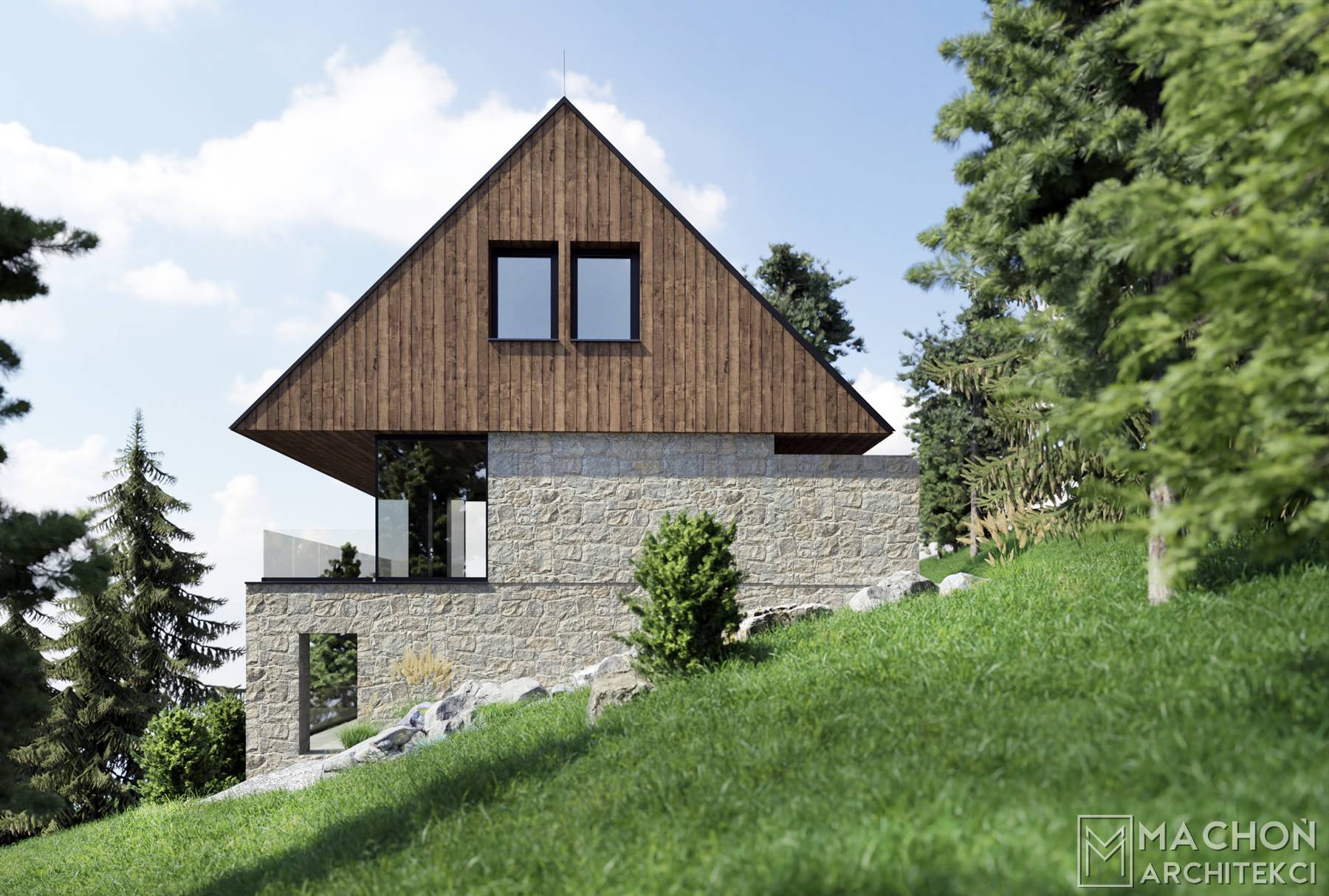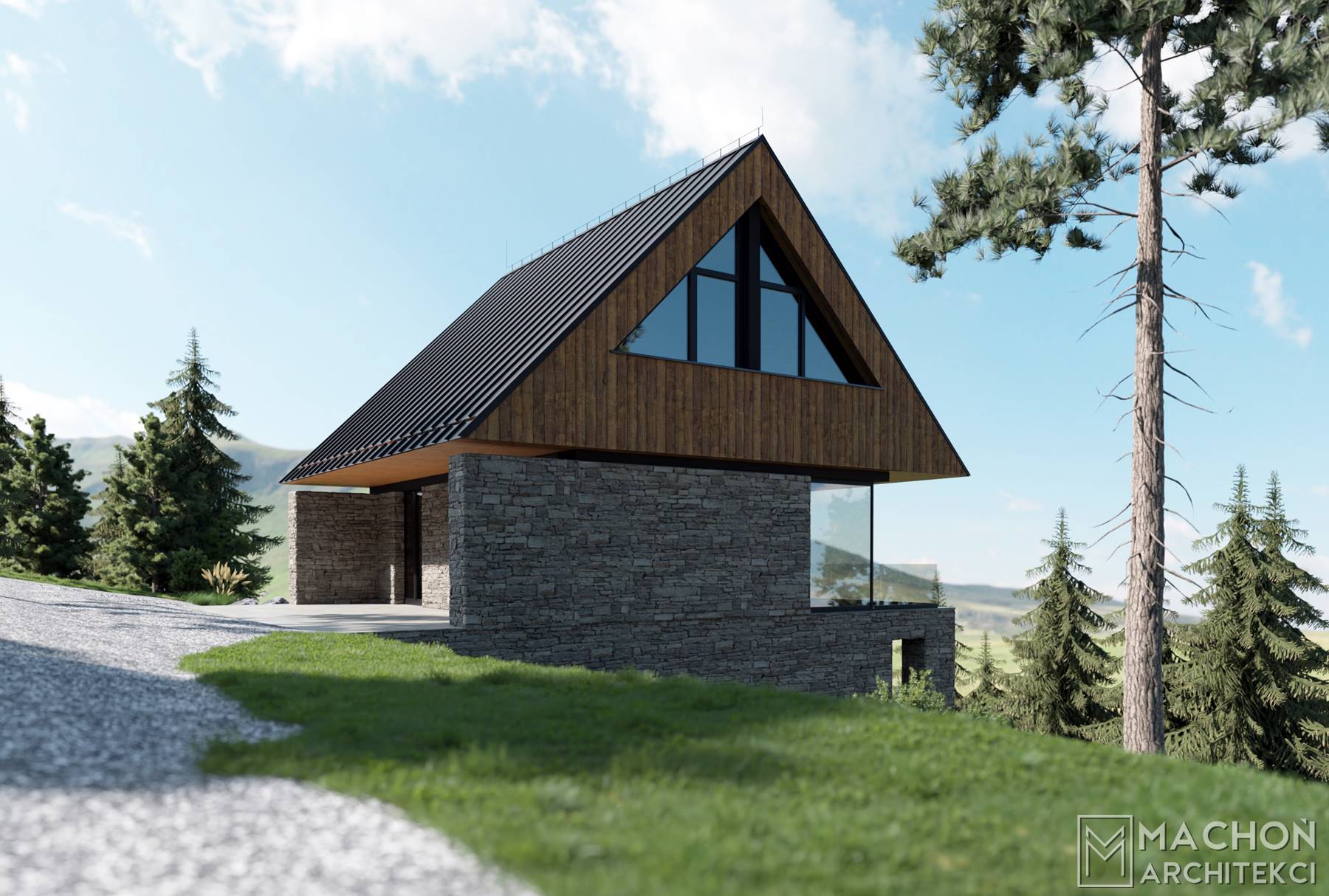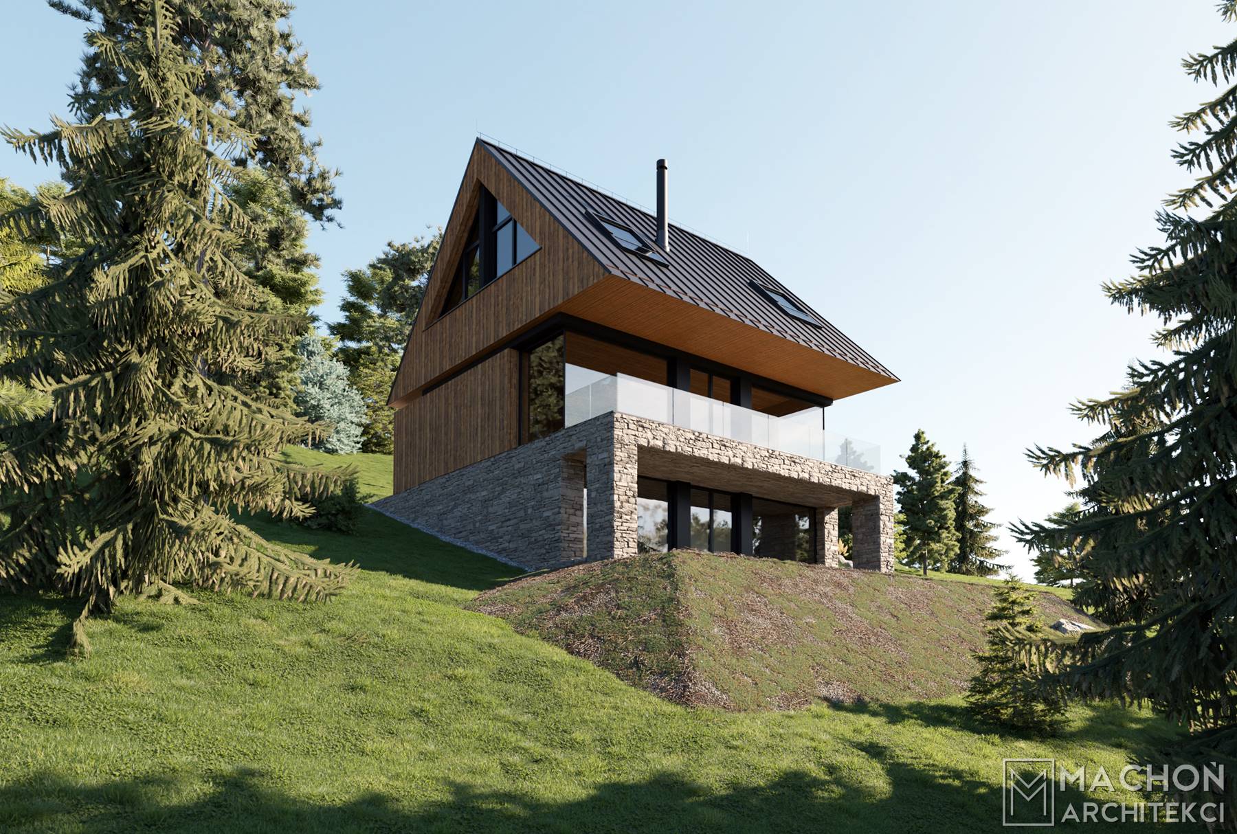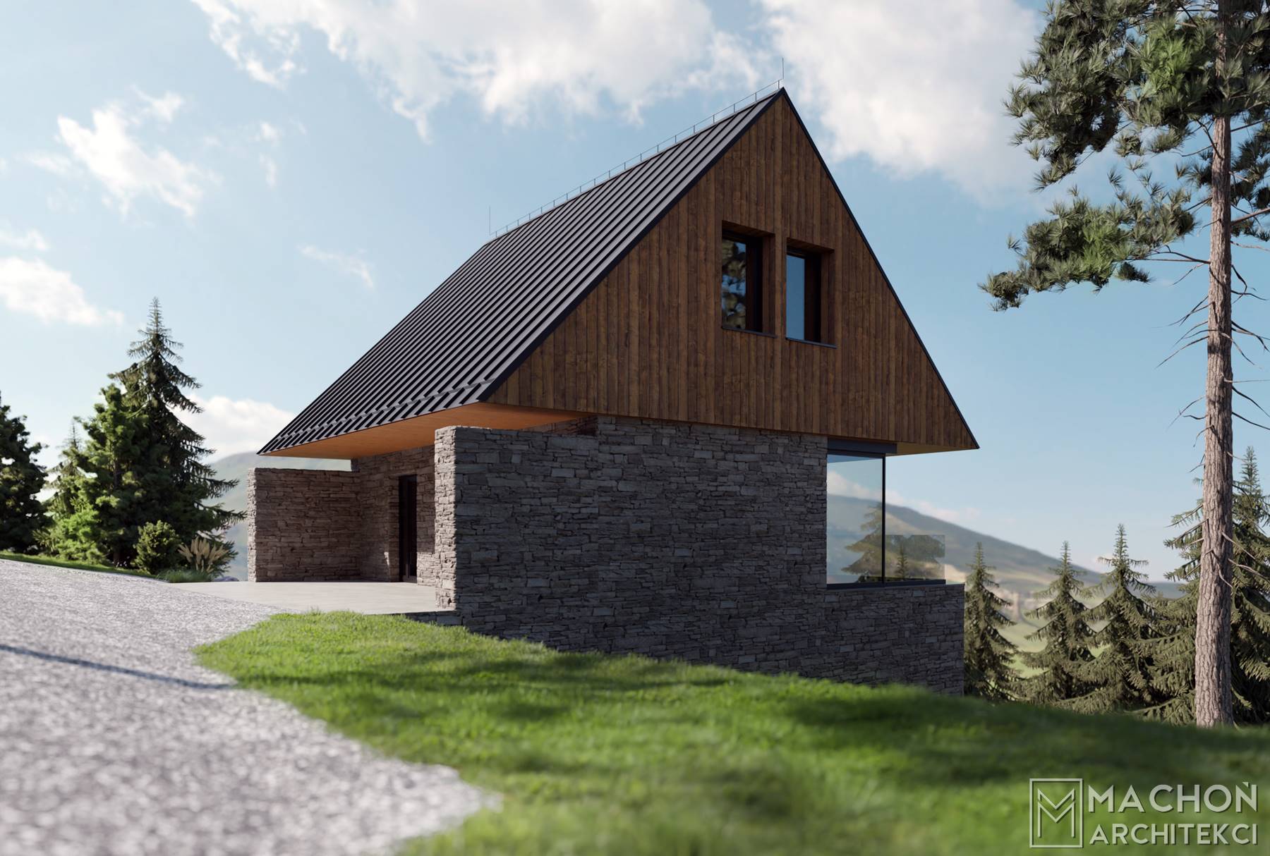 Projekty budynków mieszkalnych jednorodzinnych ulokowanych na działce ze znacznym spadkiem terenu. Budynki mają 3 kondygnacje z czego jedną w formie piwnicy. Domy przekryte dwuspadowymi dachami o dużym okapie, nowoczesna minimalistyczna bryła nawiązuje do tradycyjnego budownictwa regionu. Projekt powstał w wielu wariantach wykończenia elewacji oraz w kilku wariantach kształtu i wielkości okien ścian szczytowych.